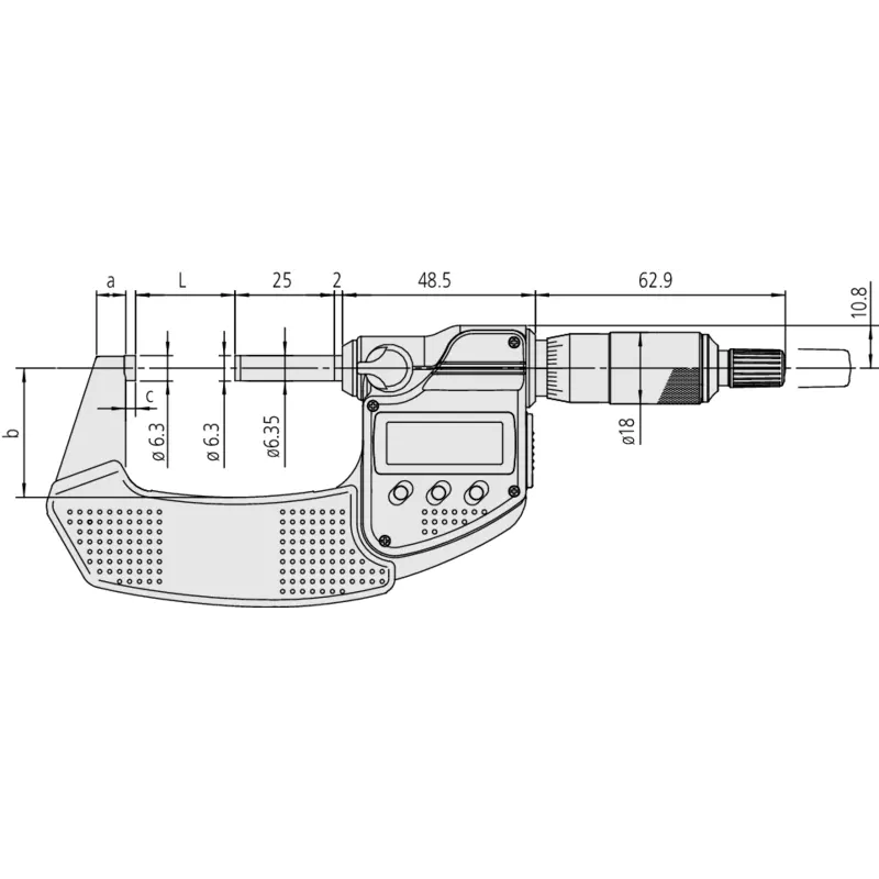 A Mitutoyo waterproof digital micrometer suitable for use in the presence of coolant or cutting oil. The highly stable frame incorporates a heat shield to preserve accuracy over extended measuring sessions. A ratchet thimble guarantees repeatable measurement. Digimatic data output.